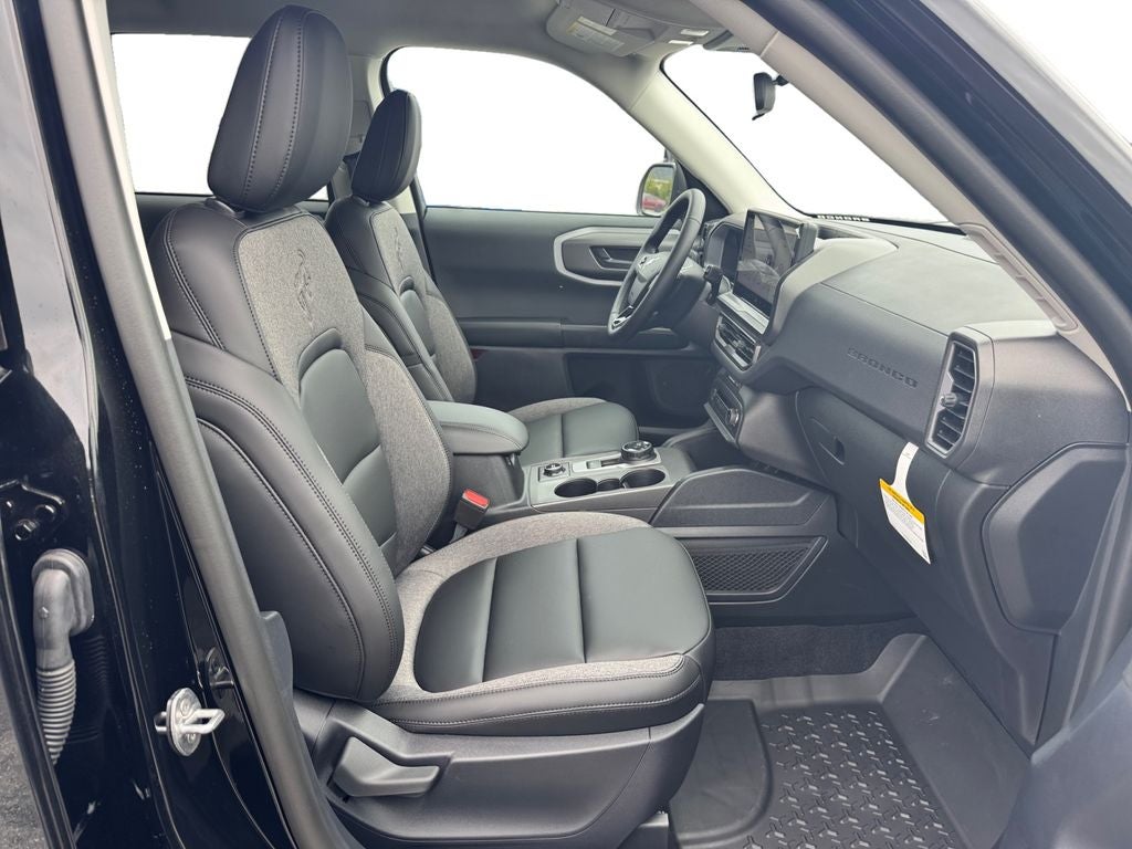 Black Appearance Package (Carbon Black Grille with Black Painted BRONCO Lettering, Cargo Mat, Front and Rear Floor Liners Without Carpet Mats, Front Driver/Passenger Seat Back Map Pockets, Liftgate with Black BRONCO SPORT Lettering, Painted Shadow Black Roof, Premium Trimmed Front Sport Contour Bucket Seats, and Wheels: 17 Matte Black-Painted Aluminum), Convenience Package (Heated 8-Way Power Driver's Seat, LED Fog Lamps, and Premium Wrapped Steering Wheel), Equipment Group 200A Standard Package (AM/FM Stereo, Cloth with Easy-to-Clean Front Bucket Seats, SiriusXM with 360L, SYNC 4 with Enhanced Voice Recognition, and Wheels: 17 Carbonized Gray Painted Aluminum), Ford Connectivity Package (1-Year Included), Internet access capable: 5G Modem - Ford Connectivity Package, 4-Wheel Disc Brakes, 6 Speakers, ABS brakes, Air Conditioning, Alloy wheels, AM/FM radio: SiriusXM with 360L, Apple CarPlay/Android Auto, Auto High-beam Headlights, Automatic temperature control, Brake assist, Compass, Delay-off headlights, Driver door bin, Driver vanity mirror, Dual front impact airbags, Dual front side impact airbags, Electronic Stability Control, Emergency communication system: SYNC 4 911 Assist, Exterior Parking Camera Rear, Four wheel independent suspension, Front and Rear Splash Guards, Front anti-roll bar, Front Bucket Seats, Front Center Armrest, Front License Plate Bracket, Front reading lights, Fully automatic headlights, Heated door mirrors, Illuminated entry, Knee airbag, Low tire pressure warning, Occupant sensing airbag, Outside temperature display, Overhead airbag, Overhead console, Panic alarm, Passenger door bin, Passenger vanity mirror, Power door mirrors, Power steering, Power windows, Radio data system, Rear anti-roll bar, Rear Parking Sensors, Rear reading lights, Rear seat center armrest, Rear window defroster, Rear window wiper, Remote keyless entry, Security system, Speed control, Speed-sensing steering, Speed-Sensitive Wipers, Split folding rear seat, Steering wheel mounted audio controls, Tachometer, Telescoping steering wheel, Tilt steering wheel, Traction control, Trip computer, and Variably intermittent wipers All vehicles will have a $899.00 dealer fee added to the total sale price (excludes A,Z,D, and X plan customers). Taxes, tag, and title fees will be added to all vehicles in accordance with state laws of customers registering address. *** We make every effort to provide you with the most accurate, up-to-the-minute information, however it is your responsibility to verify with the Dealer that all details listed and installed options are accurate for this specific vehicle. To ensure accuracy, please contact the dealership to verify the exact options, features and programs that are included and are available for this specific vehicle prior to purchase.