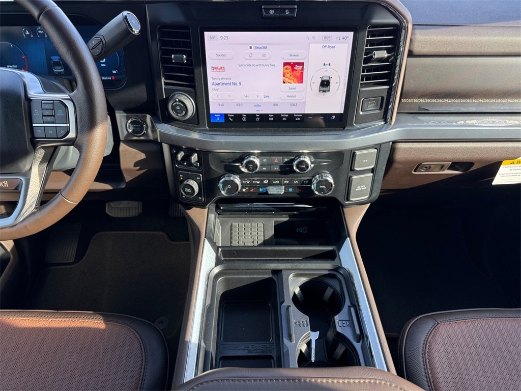 Ford Connectivity Package (1-Year Included), FX4 Off-Road Package (Hill Descent Control, Off-Road Specifically Tuned Shock Absorbers, and Unique FX4 Off-Road Box Decal), Internet access capable: 5G Modem - Ford Connectivity Package, Order Code 710A (Flow-Through Console, Radio: B&O Unleashed Sound System by Bang & Olufsen, SiriusXM with 360L, SYNC 4 with Enhanced Voice Recognition, Unique King Ranch Leather 40/Console/40 Seats, and Wheels: 20 Bright Machined Aluminum), 4WD, 14 Speakers, 4-Wheel Disc Brakes, ABS brakes, Adjustable pedals, Air Conditioning, Alloy wheels, AM/FM radio: SiriusXM with 360L, Auto High-beam Headlights, Auto tilt-away steering wheel, Auto-dimming Rear-View mirror, Automatic temperature control, Brake assist, Compass, Delay-off headlights, Driver door bin, Driver vanity mirror, Dual front impact airbags, Dual front side impact airbags, Electronic Stability Control, Emergency communication system: SYNC 4 911 Assist, Engine Block Heater, Front anti-roll bar, Front Bucket Seats, Front Center Armrest, Front dual zone A/C, Front fog lights, Front License Plate Bracket, Front reading lights, Fully automatic headlights, Garage door transmitter, Heads-Up Display, Heated door mirrors, Heated front seats, Heated rear seats, Heated steering wheel, Illuminated entry, Leather steering wheel, LED Roof Clearance Lights, Low tire pressure warning, Memory seat, Navigation system: Connected Navigation, Outside temperature display, Overhead airbag, Overhead console, Panic alarm, Passenger door bin, Passenger vanity mirror, Pedal memory, Power door mirrors, Power driver seat, Power passenger seat, Power steering, Power windows, Rain sensing wipers, Rear reading lights, Rear seat center armrest, Rear step bumper, Rear window defroster, Remote keyless entry, Security system, Speed control, Split folding rear seat, Steering wheel memory, Steering wheel mounted A/C controls, Steering wheel mounted audio controls, Tachometer, Telescoping steering wheel, Tilt steering wheel, Traction control, Trip computer, Turn signal indicator mirrors, Twin Panel Power Moonroof, Upfitter Switches (6), Variably intermittent wipers, and Ventilated front seats All vehicles will have a $899.00 dealer fee added to the total sale price (excludes A,Z,D, and X plan customers). Taxes, tag, and title fees will be added to all vehicles in accordance with state laws of customers registering address. *** We make every effort to provide you with the most accurate, up-to-the-minute information, however it is your responsibility to verify with the Dealer that all details listed and installed options are accurate for this specific vehicle. To ensure accuracy, please contact the dealership to verify the exact options, features and programs that are included and are available for this specific vehicle prior to purchase.
