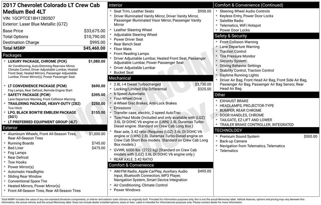 - Vehicle Name: Chevrolet Colorado