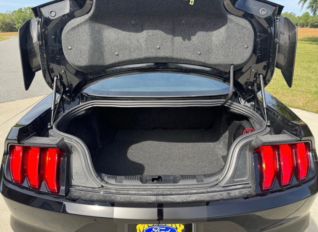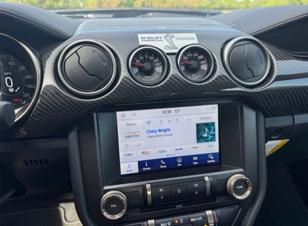 Recent Arrival! CARFAX One-Owner. Odometer is 8053 miles below market average! Murray Ford Superstore of Starke is pumped up to offer this charming 2021 Ford Mustang in Shadow Black This vehicle is readily available and comes with the following Carbon Fiber Track Pack (Adjustable Strut Top Mounts, Exposed Carbon Fiber GT4 Track Wing, Exposed Carbon Fiber Instrument Panel, RECARO Leather-Trimmed Seats w/Miko Suede, Wheel Locking Kit, and Wheels: 20 Exposed Carbon Fiber), Equipment Group 950A, Technology Package (BLIS Blind Spot Information System, Heated Mirrors, Radio: B&O Sound System by Bang & Olufsen, and Voice-Activated Touch-Screen Navigation System), 20 Wheels, 4-Wheel Disc Brakes, 9 Speakers, ABS brakes, Adaptive suspension, Air Conditioning, Alloy wheels, AM/FM radio: SiriusXM, AM/FM Stereo, Auto-dimming Rear-View mirror, Automatic temperature control, Blue Indoor Car Cover (Dealer Installed), Brake assist, Bumpers: body-color, CD player, Climate Controlled Front Seats, Compass, Delay-off headlights, Driver door bin, Driver vanity mirror, Dual front impact airbags, Dual front side impact airbags, Electronic Stability Control, Emergency communication system: 911 Assist, Exterior Parking Camera Rear, Four wheel independent suspension, Front anti-roll bar, Front Bucket Seats, Front Center Armrest, Front dual zone A/C, Front reading lights, Fully automatic headlights, Garage door transmitter, Heated front seats, High-Intensity Discharge Headlights, Illuminated entry, Knee airbag, Leather-Trimmed Sport Seats, Low tire pressure warning, Navigation System, Occupant sensing airbag, Outside temperature display, Overhead airbag, Panic alarm, Passenger door bin, Passenger vanity mirror, Power door mirrors, Power driver seat, Power passenger seat, Power steering, Power windows, Radio data system, Rear anti-roll bar, Rear window defroster, Remote keyless entry, Security system, SiriusXM Radio, Speed control, Speed-sensing steering, Speed-Sensitive Wipers, Split folding rear seat, Spoiler, Sport steering wheel, Steering wheel mounted audio controls, SYNC 3 Communications & Entertainment System, Tachometer, Telescoping steering wheel, Tilt steering wheel, Traction control, Trip computer, Variably intermittent wipers, Ventilated front seats, Voltmeter, and Wheels: 20 Flow Formed High Gloss Black Aluminum;