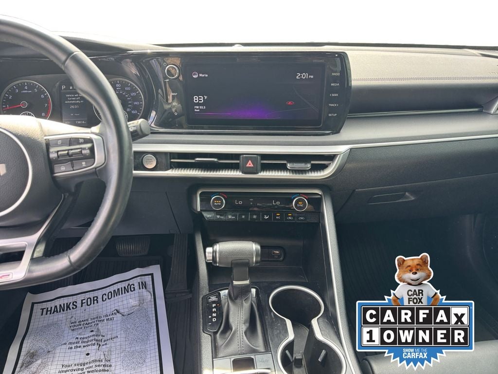 Recent Arrival! CARFAX One-Owner. Murray Ford Superstore of Starke is pleased to offer this outstanding 2022 Kia K5 in Sapphire Blue This vehicle is readily available and comes with the following GT-Line FWD Premium Package (Forward Collision Avoidance-Assist - Cyclist, Forward Collision Avoidance-Assist - Junction Turn, Gloss Black Pillar & Door Frame Cover, Highway Driving Assist, LED Interior Lighting, LED Projection Headlights, Navigation-Based Smart Cruise Control - Curve, Panoramic Sunroof, and Smart Cruise Control w/Stop & Go), Ford Blue Advantage: Blue Certified Certified, 4-Wheel Disc Brakes, 6 Speakers, ABS brakes, Air Conditioning, Alloy wheels, AM/FM radio: SiriusXM, Apple CarPlay & Android Auto, Auto High-beam Headlights, Automatic temperature control, Brake assist, Bumpers: body-color, Cargo Mat, Carpeted Floor Mats, Cloth/Leatherette Seat Trim, Delay-off headlights, Driver door bin, Driver vanity mirror, Dual front impact airbags, Dual front side impact airbags, EC Mirror w/Homelink, Electronic Stability Control, Four wheel independent suspension, Front anti-roll bar, Front Bucket Seats, Front Center Armrest, Front dual zone A/C, Front fog lights, Front reading lights, Fully automatic headlights, Heated door mirrors, Illuminated Door Sill Plates, Illuminated entry, Knee airbag, Low tire pressure warning, Mud Guards, Navigation System, Occupant sensing airbag, Outside temperature display, Overhead airbag, Overhead console, Panic alarm, Passenger door bin, Passenger vanity mirror, Power door mirrors, Power driver seat, Power steering, Power windows, Radio data system, Radio: AM/FM/MP3 Audio System, Rear anti-roll bar, Rear seat center armrest, Rear side impact airbag, Rear window defroster, Remote keyless entry, Speed-sensing steering, Split folding rear seat, Spoiler, Sport steering wheel, Steering wheel mounted audio controls, Tachometer, Telescoping steering wheel, Tilt steering wheel, Traction control, Trip computer, Turn signal indicator mirrors, Variably intermittent wipers, and Wheels: 7.5J x 18 Gloss Black Machined Finish Alloy;