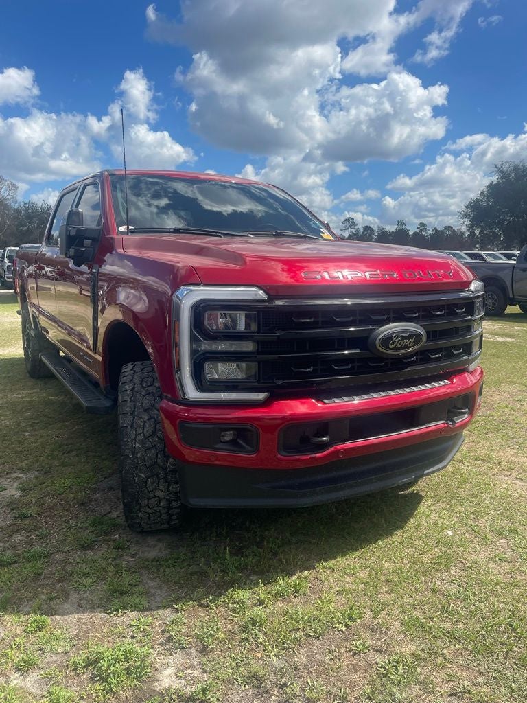 Recent Arrival! CARFAX One-Owner. Murray Ford Superstore of Starke is very proud to offer this stout 2024 Ford F-350SD in Red Metallic This vehicle is readily available and comes with the following Black Appearance Package (6 Ebony Black Angular Running Boards, Body Color Front & Rear Bumpers, Ebony Black Painted Front Grille Bars, Ebony Black Painted Mirror Caps, Rear Wheel Well Liners (Pre-Installed), Tough Bed Spray-In Bedliner, and Wheels: 20 Machined & Ebony Black High Gloss), FX4 Off-Road Package (Hill Descent Control, Off-Road Specifically Tuned Shock Absorbers, and Unique FX4 Off-Road Box Decal), Lariat Ultimate Package (4-Way Adjustable Headrests, Front Sensing System, Head-Up Display, Intelligent Adaptive Cruise Control w/Stop-and-Go, Power-Deployable Running Boards, Pro Trailer Backup Assist, Pro Trailer Hitch Assist, Radio: B&O Unleashed Sound System by Bang & Olufsen, SiriusXM Radio w/360L, SYNC 4 w/Enhanced Voice Recognition, Tailgate Step & Handle, Upfitter Switches (6), and Wireless Charging Pad), Order Code 618A, Ford Gold Certified Certified, 4WD, 190 Amp Alternator, 4-Wheel Disc Brakes, 8 Speakers, ABS brakes, Adjustable pedals, Air Conditioning, All-Weather Floor Mats, Alloy wheels, AM/FM radio: SiriusXM with 360L, Auto High-beam Headlights, Auto tilt-away steering wheel, Auto-dimming Rear-View mirror, Automatic High Beam, Automatic temperature control, BLIS w/Cross-Traffic Alert, Brake assist, Bumpers: chrome, Compass, Delay-off headlights, Driver door bin, Driver vanity mirror, Dual 68 AH/65 AGM Batteries, Dual front impact airbags, Dual front side impact airbags, Electronic Stability Control, Electronic-Locking w/3.73 Axle Ratio, Emergency communication system: SYNC 4 911 Assist, Exterior Parking Camera Rear, Flow-Through Console, Front anti-roll bar, Front Bucket Seats, Front Center Armrest, Front dual zone A/C, Front fog lights, Front Leather-Trimmed 40/Console/40 Seats, Front License Plate Bracket, Front reading lights, Fully automatic headlights, Garage door transmitter, Heated door mirrors, Heated front seats, Heated rear seats, Heated steering wheel, Illuminated entry, Lane-Keeping System, Leather steering wheel, Low tire pressure warning, Memory seat, Navigation system: Connected Navigation (includes complimentary 1-year trial), Outside temperature display, Overhead airbag, Overhead console, Panic alarm, Passenger door bin, Passenger vanity mirror, Pedal memory, Post-Collision Braking, Power door mirrors, Power driver seat, Power passenger seat, Power steering, Power windows, Pre-Collision Assist, Radio: B&O Sound System by Bang & Olufsen, Rain sensing wipers, Rear reading lights, Rear seat center armrest, Rear step bumper, Rear window defroster, Remote keyless entry, Security system, Speed control, Split folding rear seat, Steering wheel memory, Steering wheel mounted audio controls, Tachometer, Telescoping steering wheel, Tilt steering wheel, Traction control, Trip computer, Turn signal indicator mirrors, Twin Panel Power Moonroof, Variably intermittent wipers, Vehicle Safe by Console Vault (Pre-Installed), Ventilated front seats, and Wheels: 18 Bright Machined & Carbonized Gray Alum;